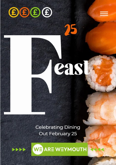 The first FEAST of 2025 will take place from Friday 28th February to Friday 14th March. Visitors and locals alike can take advantage of the great offers and support some of Weymouth's local restaurants during the quieter months.
